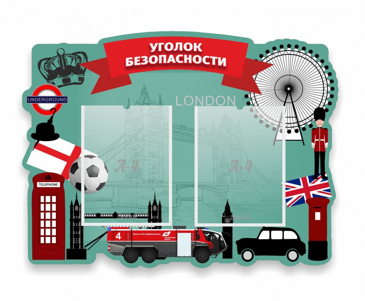 Твердый и прочный пластиковый стенд с двумя прозрачными карманами для сменной информации "УГОЛОК БЕЗОПАСНОСТИ" выполнен в строгом и лаконичном английском стиле. Благодаря такому настенному стенду, Ваши ученики не только будут хорошо знакомы с основными правилами безопасной дороги домой и безопасного поведения в школе, но и вспомнят основные классические символы Великобритании.