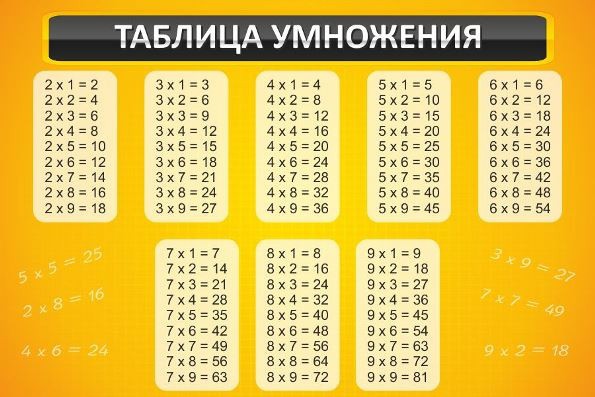 Знаменитая таблица умножения, поданная в яркой и красивой «упаковке». Этот стенд так и «нашептывает», поскорее взяться за изучение легендарной таблички. Здесь нет ничего лишнего. И это, при канареечном-то фоне! Но, надо сказать, некоторые примеры из таблицы, на фоне аккуратно вписаны лимонным оттенком, еле заметным для глаз. Когда ребята увидят, что таблица, которую им лень выучить, расположилась удобно и емко, в восьми столбцах, им сразу станет немного совестно. И школьники, безусловно, захотят лично изучить эту тему в идеале. Легкая к запоминанию, благодаря роскошному стенду, таблица умножения, придется по вкусу всем и сразу.