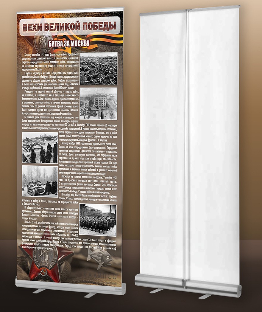 - Материал: Ролл-ап с фотопечатью 720 dpi. Основа - PP-баннер 160 г/м2.