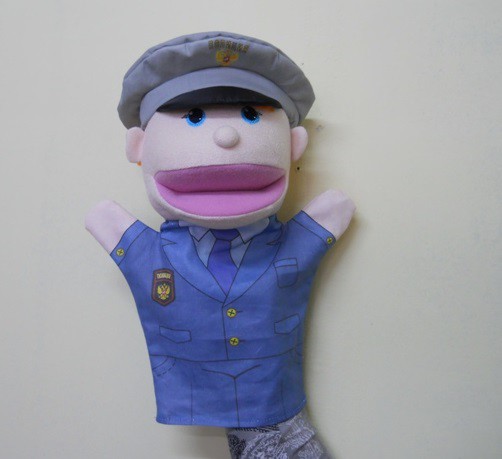 Эта кукла-перчатка легко надевается на руку, имеет подвижные органы артикуляции, которыми легко управлять.