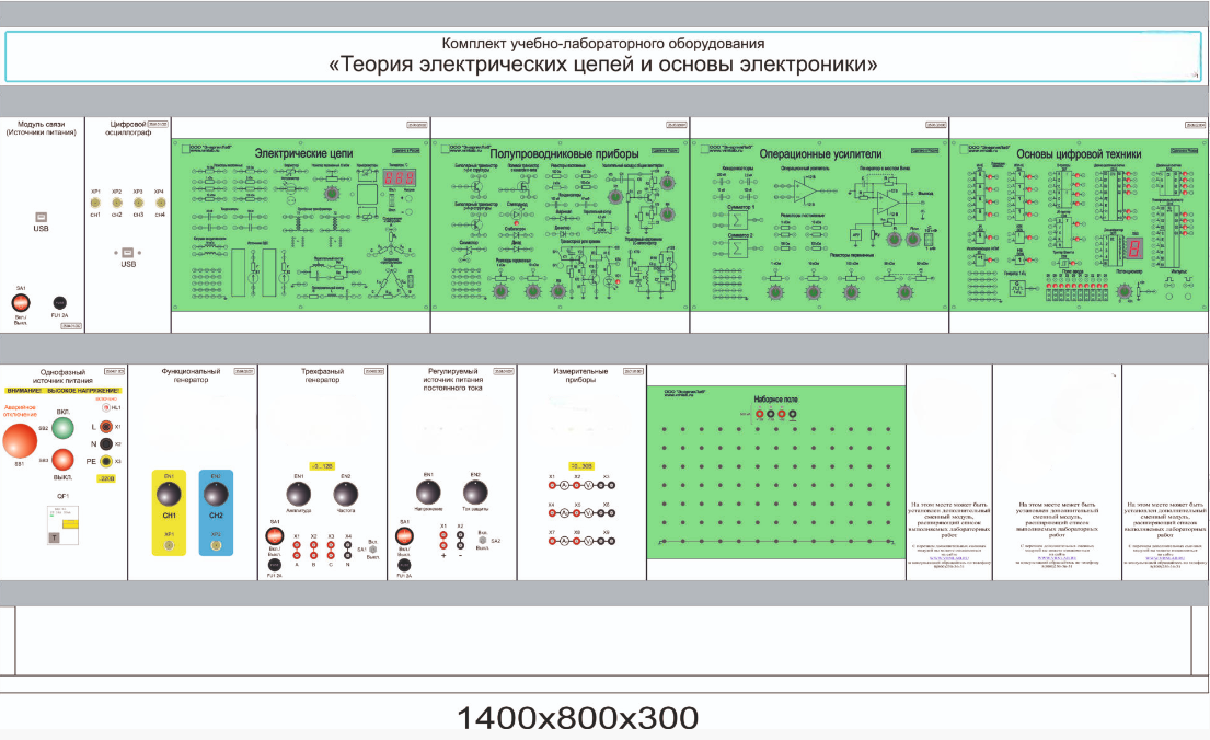 Комплект учебно-лабораторного оборудования «Теория электрических цепей и основы электроники» предназначен для проведения лабораторно-практических занятий в учреждениях начального профессионального, среднего профессионального и высшего профессионального образования, для получения базовых и углубленных профессиональных знаний и навыков.