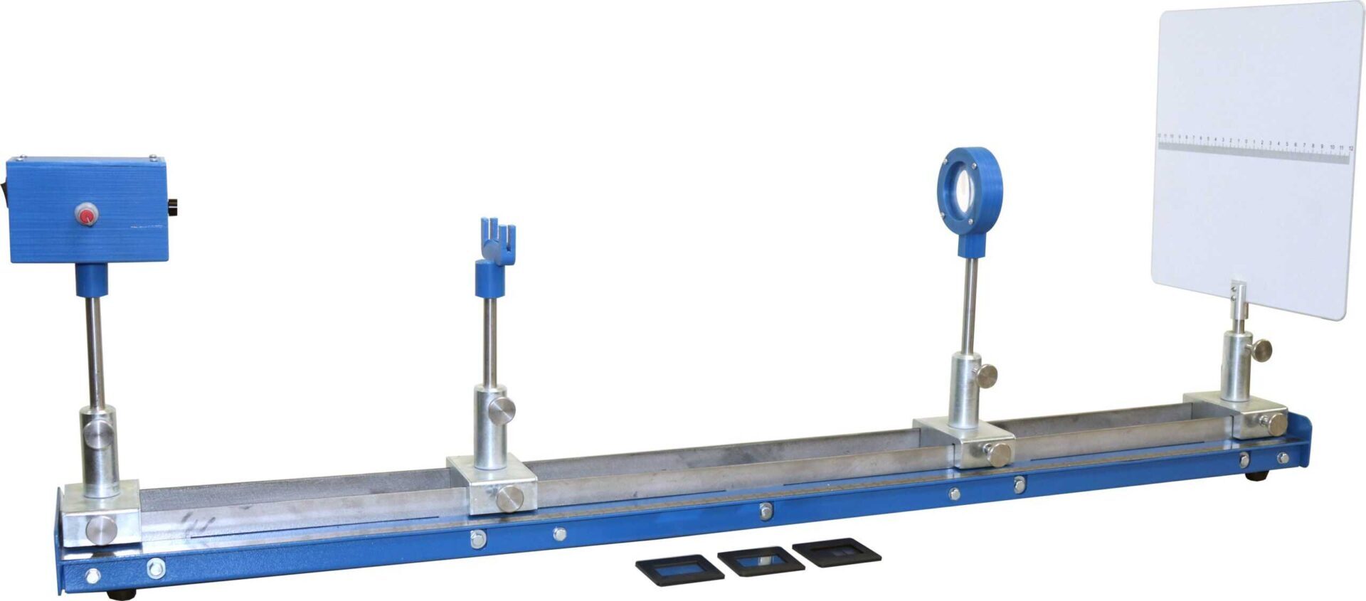В состав практикума входить: оптическая скамья, осветитель лазерный с регулируемой яркостью, линза собирающая, щель двойная, экран со шкалой, методические указания.
