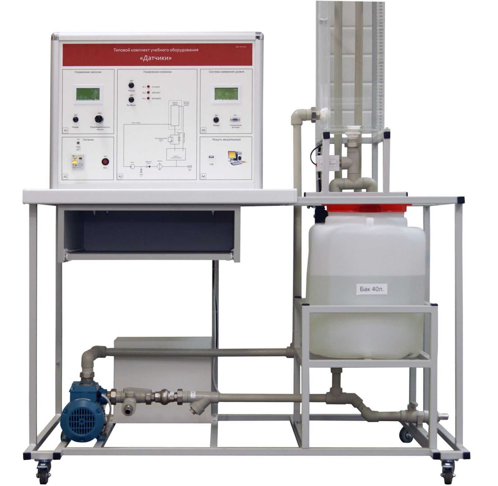 Лабораторный стенд «Датчики» предназначен для измерения уровней жидкости различными приборами, позволяет проводить сравнительный анализ метрологических характеристик и выполнять исследования автоматической системы поддержания и регулирования уровня. Применение протоколов передачи и регистрации данных о состоянии уровня жидкости позволяет своевременно принимать решения от действий возмущений.