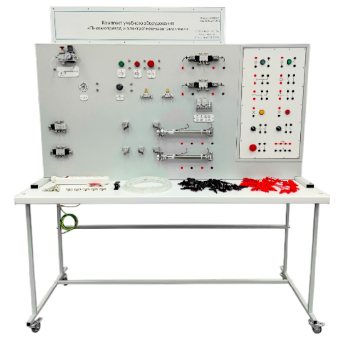 Учебный комплект электропневматических элементов для изучения структур и законов управления электропневматическими приводами.