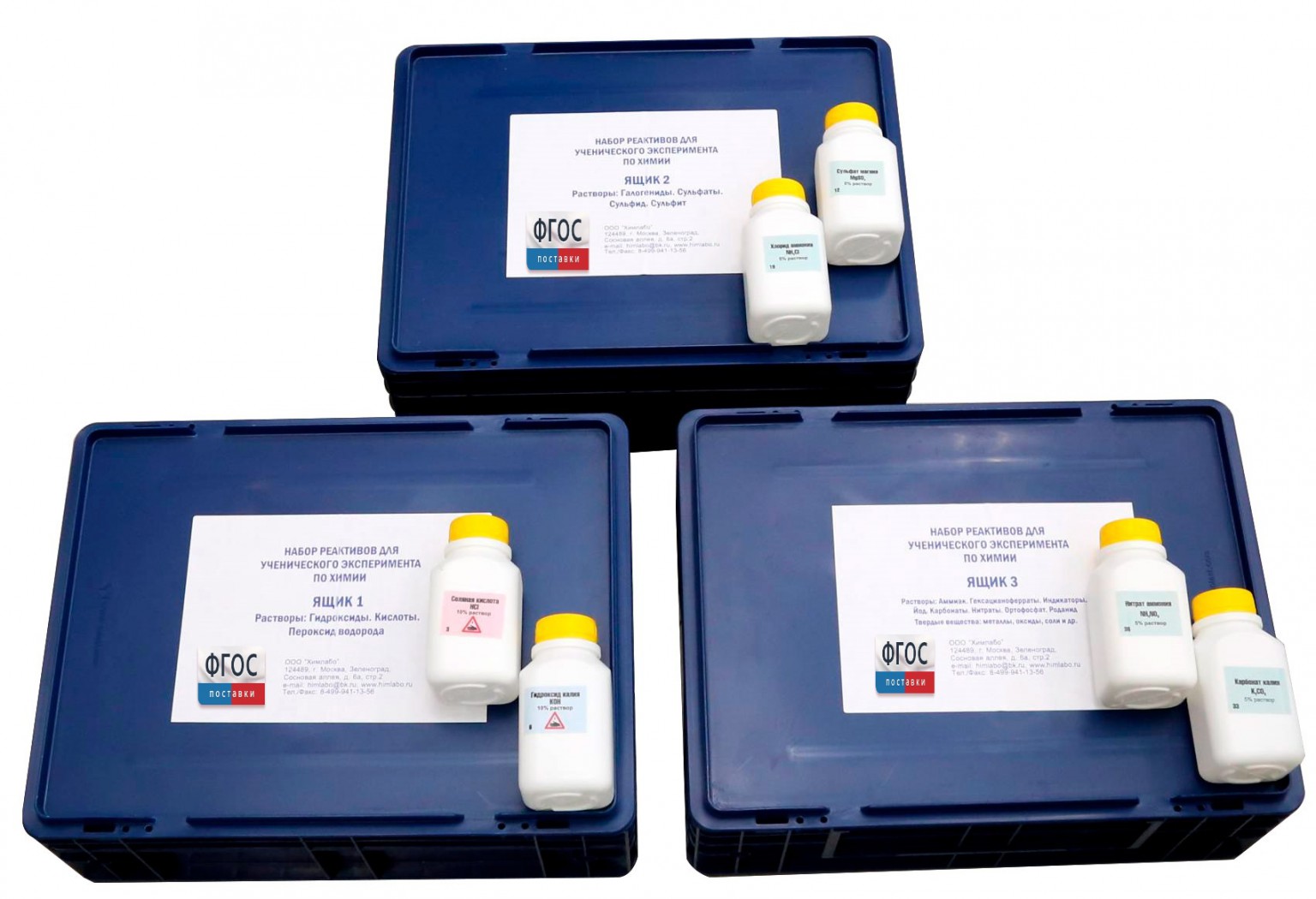Реактивы размещены в 3 ящиках.