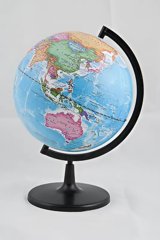 Предназначен для демонстрации при изучении курса географии. Представляет собой модель земного шара с политической картой. Глобус политический дает возможность продемонстрировать расположение на поверхности земного шара государств, наиболее крупных городов.