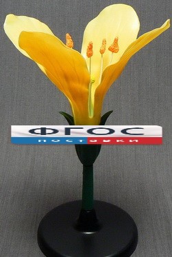 Модель представляет собой увеличенный цветок капусты изготовлена из пластмассы, цветная и устанавливается на подставку. На модели можно рассмотреть: цветоножку, цветоложе, пестик с тычинками, 2 двойных лепестка.